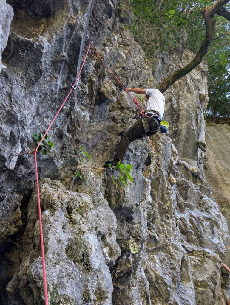 ※RPレッドポイントとは、そのルートを2回目以降に完登した際に用いるものです。ちなみに1回目で完登する事をOSオンサイト。クイックドローを着けながらオンサイトする事をMOSマスターオンサイトと言います。