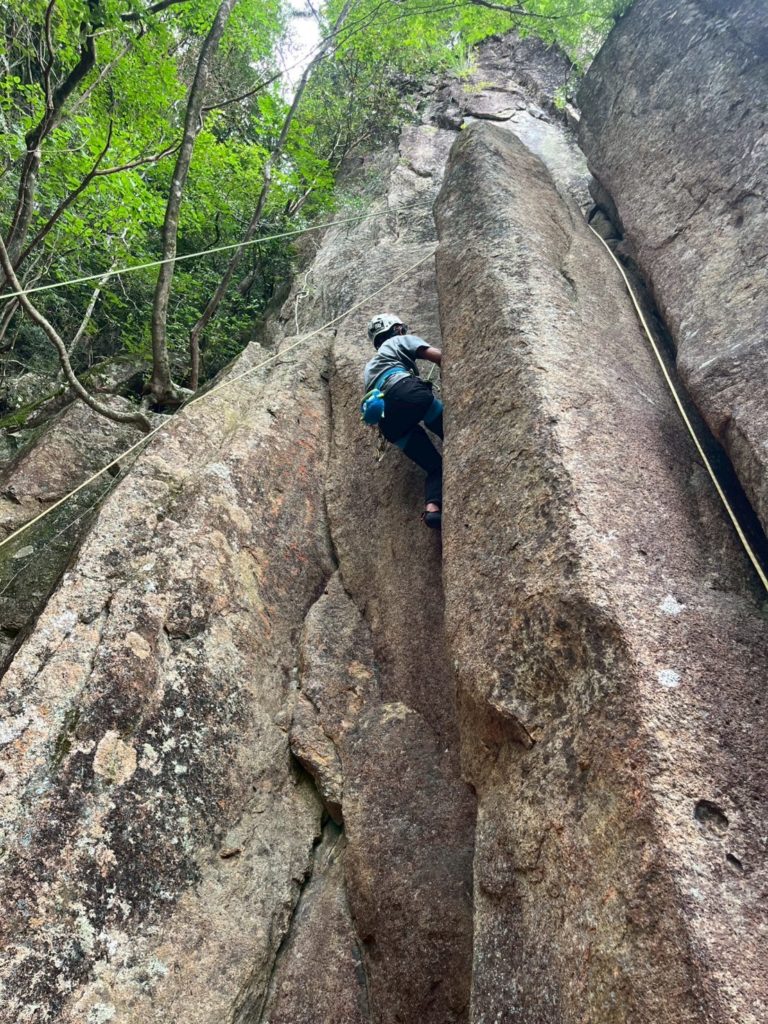 翌日は、2グループに分かれてマルチピッチクライミングをしました。