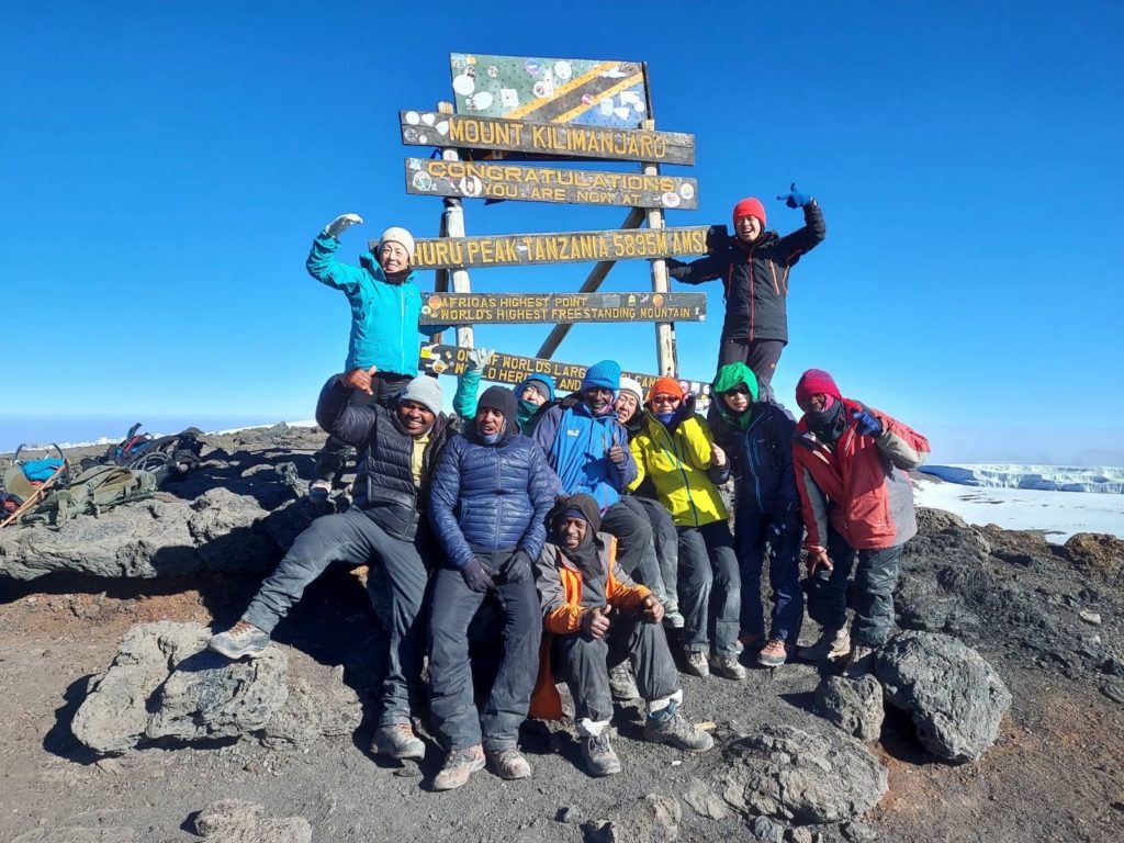 キリマンジャロはガイド、コック、ポーターなどを雇って登ることが法律で定められているため、地元旅行会社のツアーで登山することになります。関東方面の友人知人と6名で参加して、ガイド3名、コック1名、ポーター18名、総勢22名の地元チームと行く賑やかな山旅になりました。
