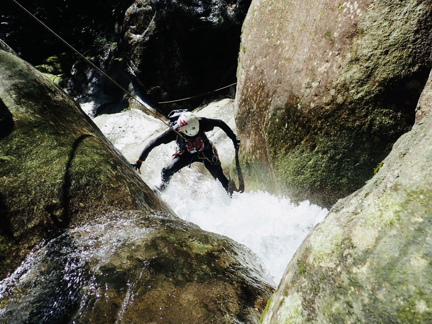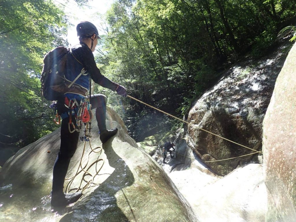 水量が多く、女性陣が3人いたこともありロープを出す回数が多くなり、予定よりかなり時間がかかりました。