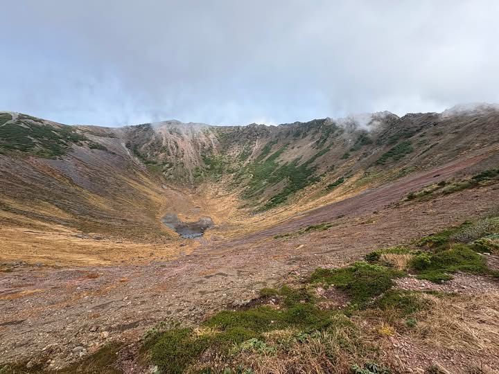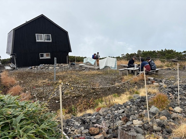 お鉢回りをして、避難小屋を見学、比羅夫登山口まで下りました。