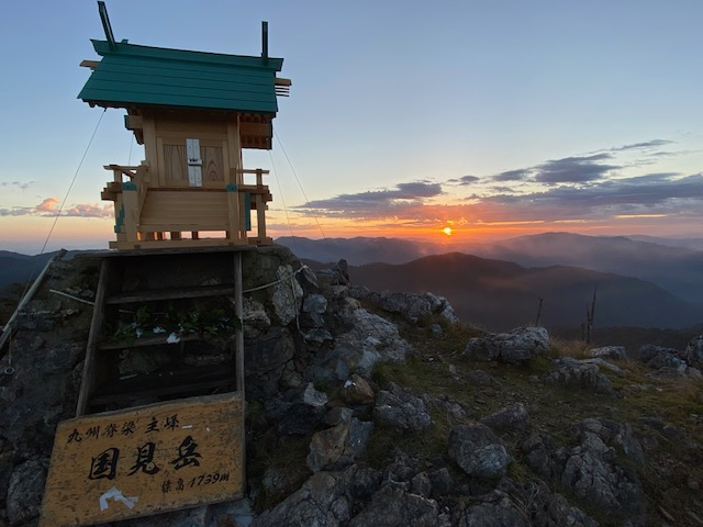 国見岳 ハイクby 山岳会あそ望in ハイキングon 投稿日: 2025年10月1日2025年10月1日 2025/9/30-10/1 メンバー:みー子さん 平家山登山口から国見岳へ。 自然災害により国見岳山頂の祠が破損し、昨年から祠の復旧活動が行われていました。 祠の復興記念とともに、ご来光を眺めに行きました。