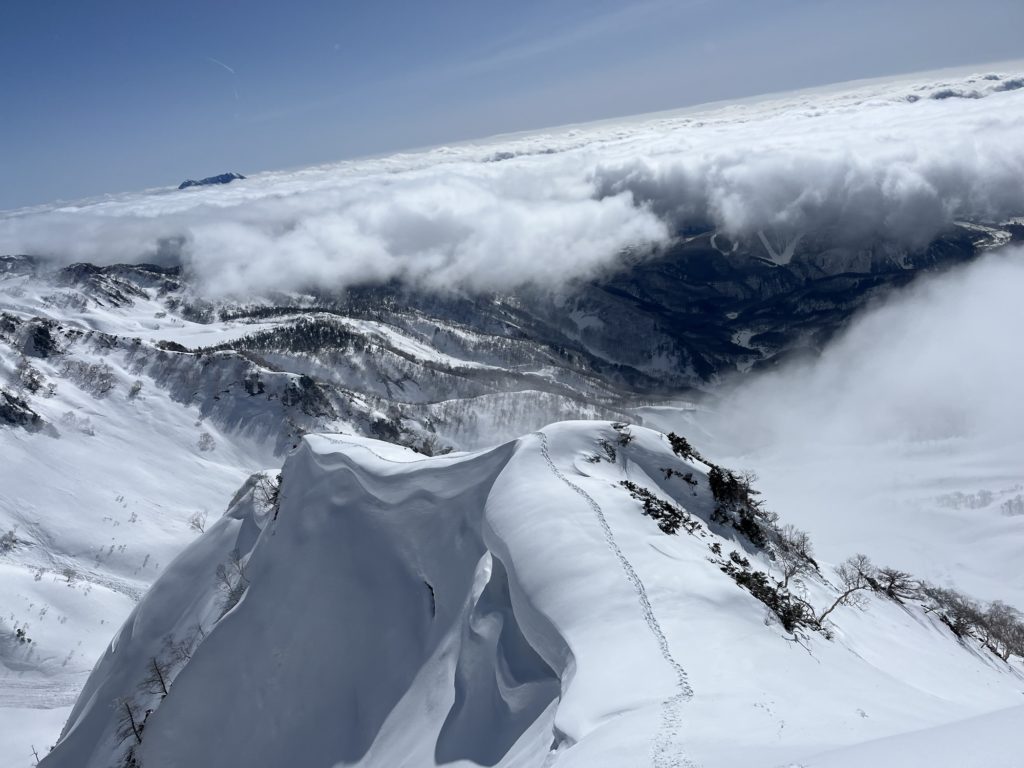 主稜に乗ればそこから山頂まで8つの大小のピークを踏む。素晴らしい雲海だ。